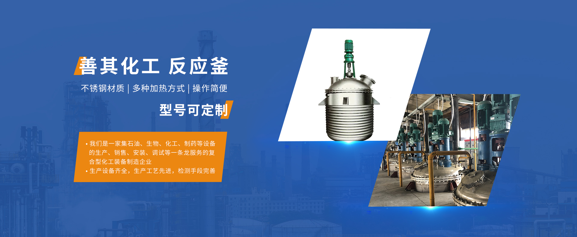 包括反应搅拌设备系列,换热、冷凝设备系列,发酵、提取设备系列,干燥、混合设备系列等