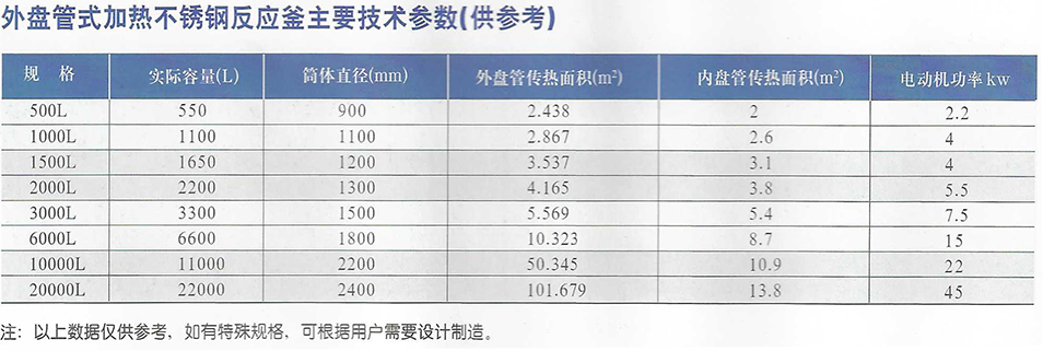 ※ 根据物料的性质、反应釜内锅可采用碳钢或不锈钢制成。物料加热可用导热油、蒸汽二种。