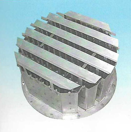 遮板式液体收集器 遮板式液体收集器是一种置于填料层下面,用来收集塔内分布均匀度已经达不到要求的液体,以便再分布或侧线采出的装置。遮板式液体收集器能将液体全部收集,它的阻力可以忽略不计,而且对气体分布的均匀性影响不大。 |
