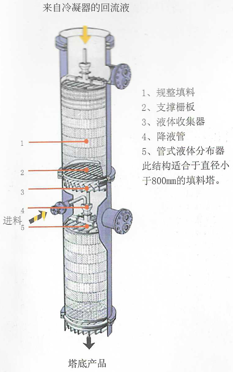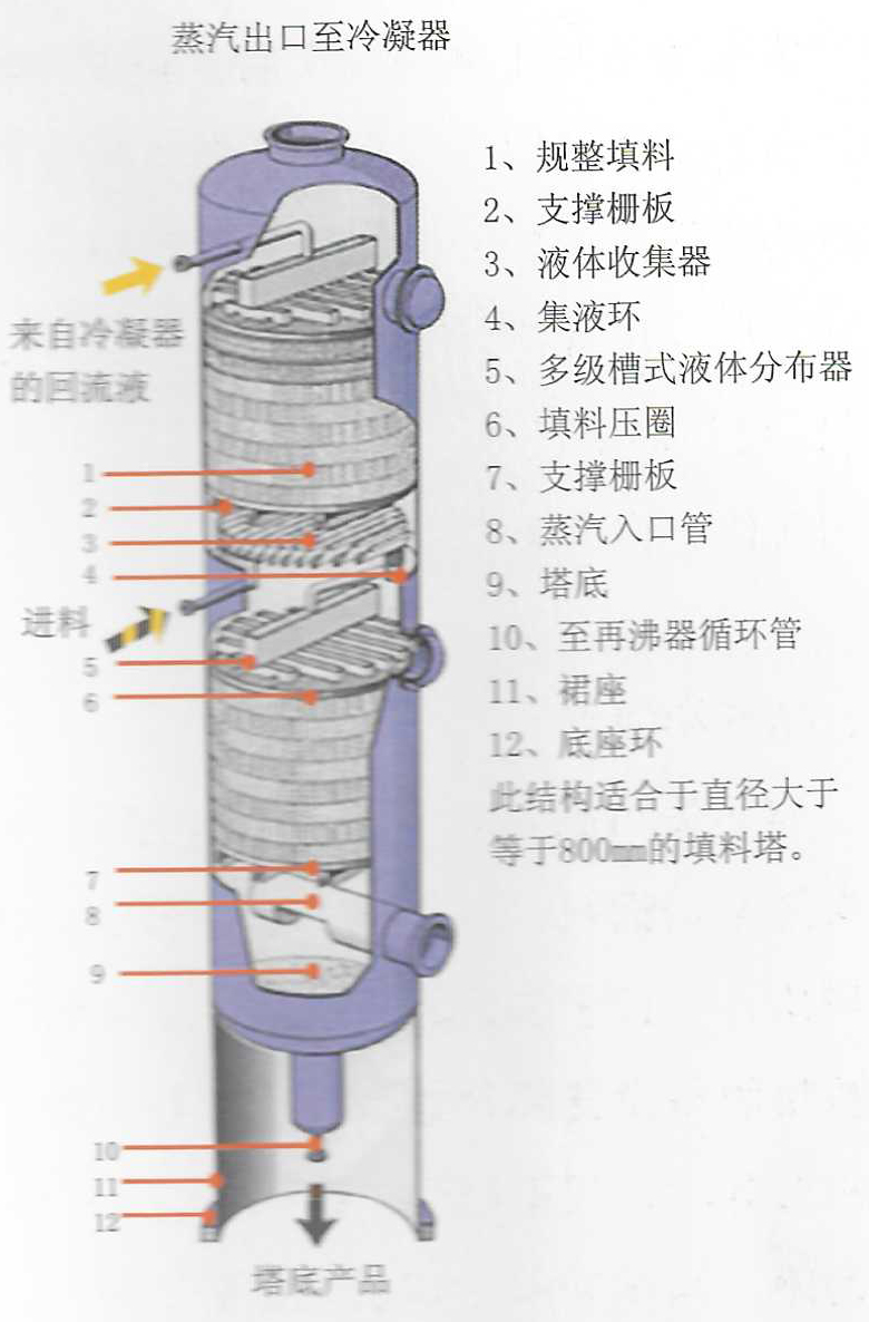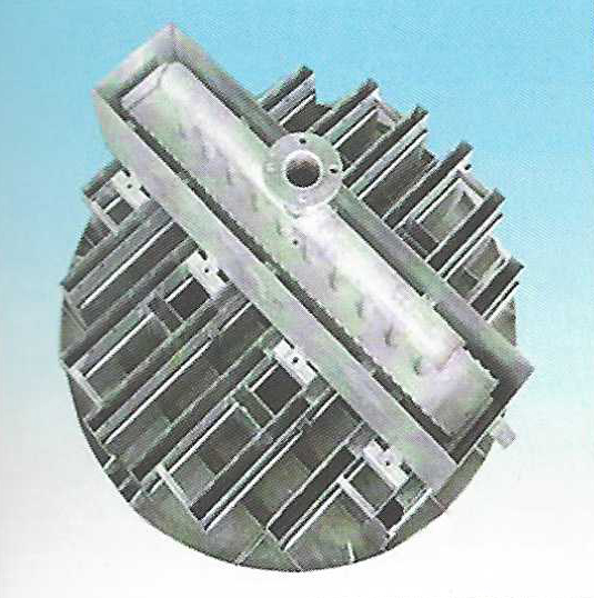 槽式液体分布器 槽式液体分布器通常是由分流槽(又称主槽或一级槽)、分布槽(又称副槽或二级槽)构成的。一级槽通过槽底开孔将液体初分成若干流股,分别加入其下方的液体分布槽。分布槽的槽底(或槽壁)上设有孔道(或导管),将液体均匀分布于填料层上。 槽式液体分布器具有较大的操作弹性和好的抗污堵性,特别适合于大气液负荷及含有固体悬浮物、粘度大的液体的分离场合。由于槽式分布器具有优良的分布性能和抗污堵性能,应用范围非常广泛。 |